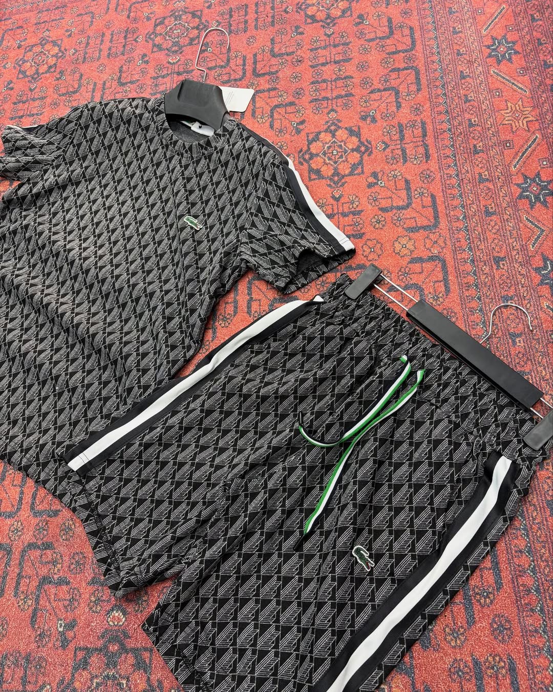 طقم رجالي أنيق بلمسة عصرية 🖤، بنقشة هندسية مميزة تضيف لمسة فخامة 🔳. خامة مريحة وخفيفة، مثالي للطلعات اليومية أو الستايل الكاجوال الراقي ✨. مزين بخط جانبي أبيض يعطيه لمسة سبور عصرية 🏁. إذا تبغى له اسم فريد أو وصف باللهجة الشبابية أكثر، أقدر أضبطه لك!